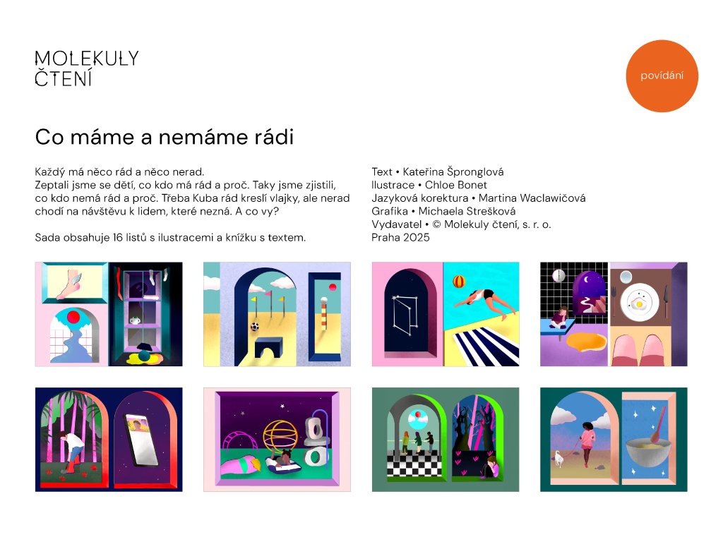 Tahle knížka je o tom, že každý má něco rád a něco nerad. Zeptali jsme se dětí, co kdo má rád a proč. Taky jsme zjistili, co kdo nemá rád a proč. Třeba Kuba rád kreslí vlajky, ale nerad chodí na návštěvu k lidem, které nezná. A co vy?
