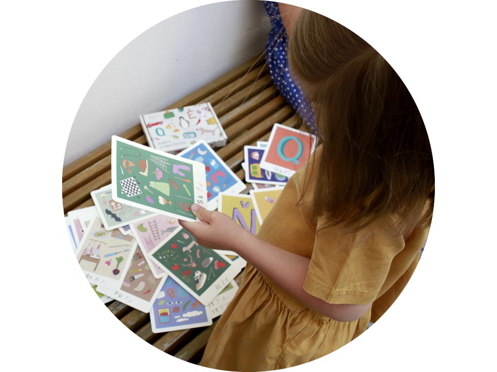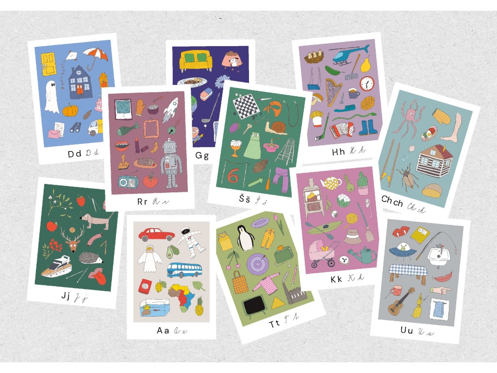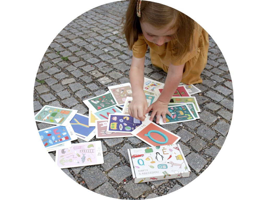 Na každé kartě jsou obrázky začínající na dané písmeno, vše v krásně zdobené krabičce.
