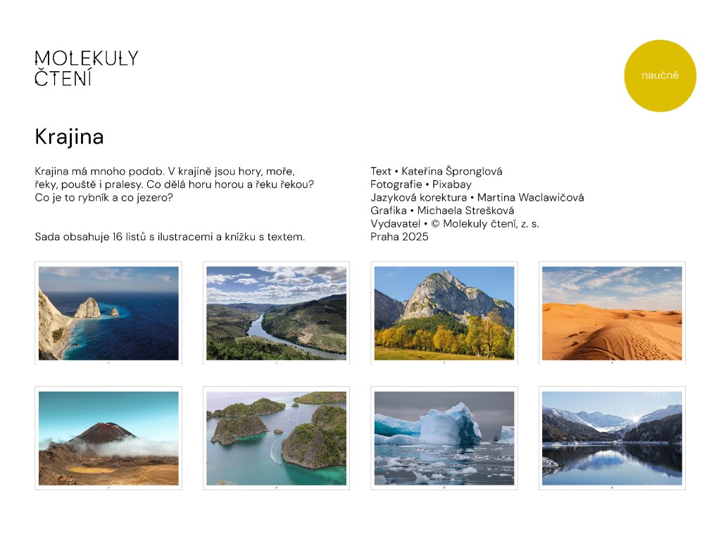 Velké obrázkové listy dokážou udržet pozornost dětí i dospělých, jsou krásným opakem rychle se měnícího obrazu na displeji. U každé sady listů Molekuly čtení najdete knížku s texty ke každému obrázku.