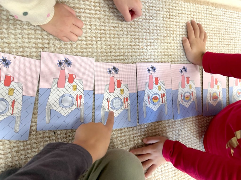 Prostíráme stůl, od ubrusu po tabuli nedělního oběda. Procvičíme paměť, orientaci v posloupnosti, vyjadřování i etiketu stolování.