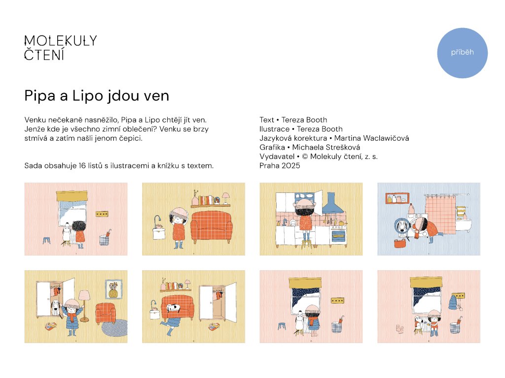 Venku nečekaně nasněžilo, Pipa a Lipo chtějí jít ven. Jenže, kde je všechno zimní oblečení? Venku se brzy stmívá a zatím našli jenom čepici.