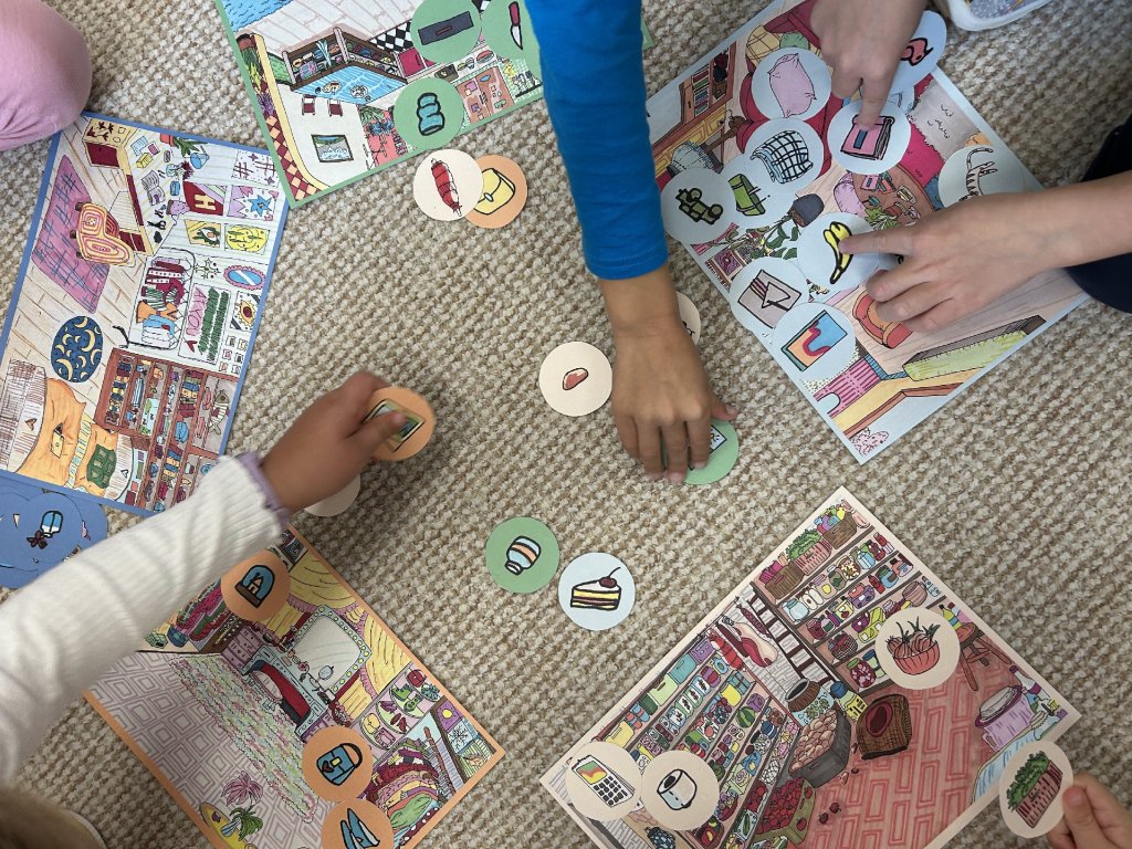 Přiřazujeme předměty k místnostem, povídáme si o rodině a domácnosti. Děti hravě trénují zrakové vnímání, paměť, orientaci v prostoru a slovní zásobu.