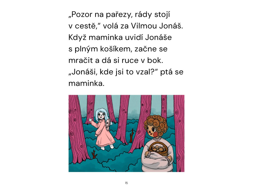 Jonáš se vydá s maminkou na houby, ale místo toho najde v lese uplakanou rozinku, tedy vlastně vílu. Jonáš se zachová jako džentlmen a dostane košík hub. Mamince ani muk.