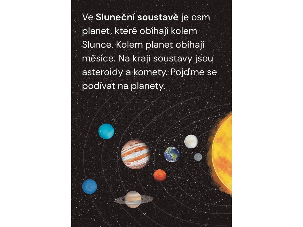 Vesmír skrývá spoustu tajemství. Co jsou to černé díry? Co je to hvězda a co Sluneční soustava? Nahlédněte s námi do nekonečného a úchvatného vesmíru. Až knížku přečtete, budete vědět zase o kousek víc.