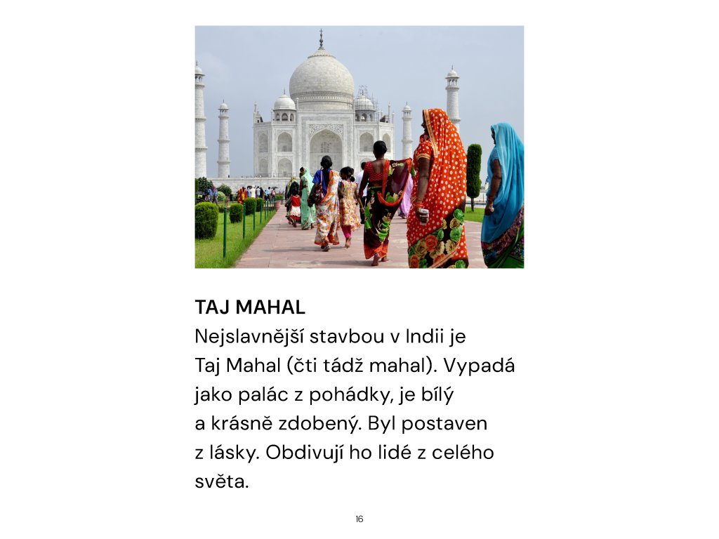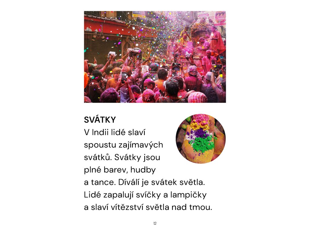 Indie je pestrá země plná barevných měst, hor, džunglí, pouští a pláží. Indie voní jako tisíc druhů koření. Jídlo, kultura, hudba, tradice, to všechno se do téhle malé knížky vešlo.