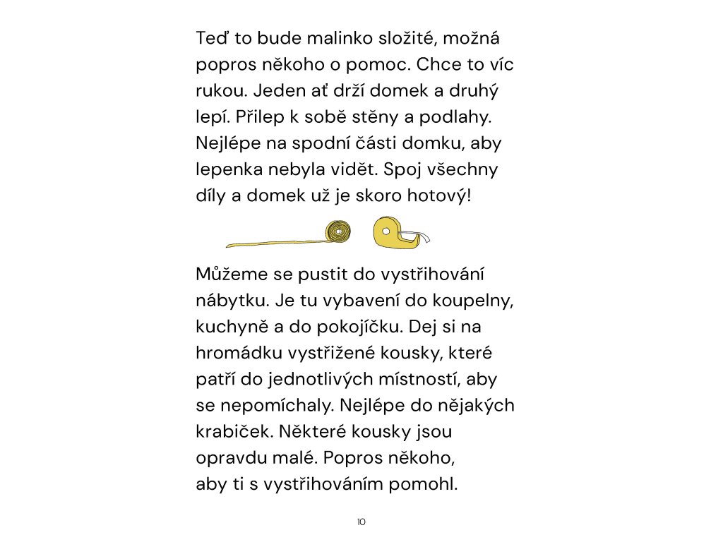 Papír není jen placka. Vezměte si nůžky, lepenku a provázek a pojďme si spolu postavit domek. Ano, domek! Nábytek si můžete stáhnout na našem webu a hurá do zařizování. Já chci mít pokoj vedle kuchyně. Co kdyby mě v noci přepadl hlad?!