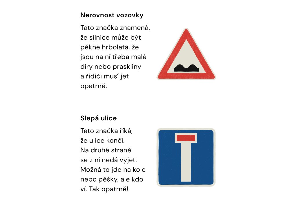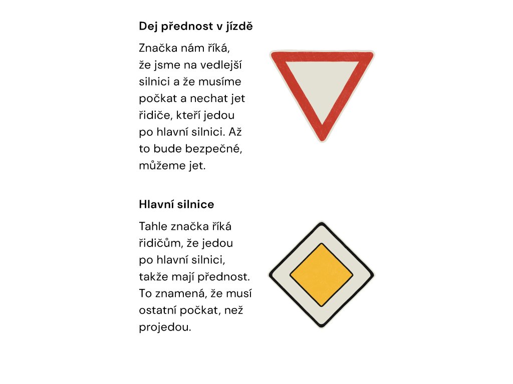 Dopravní značky jsou všude kolem nás, ať už žijeme ve městě nebo se vydáme na cesty. Značky nám něco říkají a je důležité vědět, co znamenají. Kdyby značky nebyly, byl by všude zmatek a spousta nehod. Tak jdeme na to!