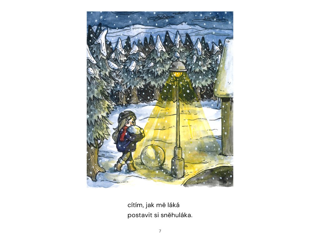 Je večer a všude je klid. Sníh se postaral o to, aby vše na chvilku utichlo. Krásná mrazivá noc láká k postavení sněhuláka. Zima ale jednou skončí a co bude pak?