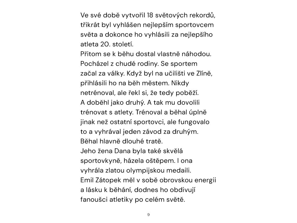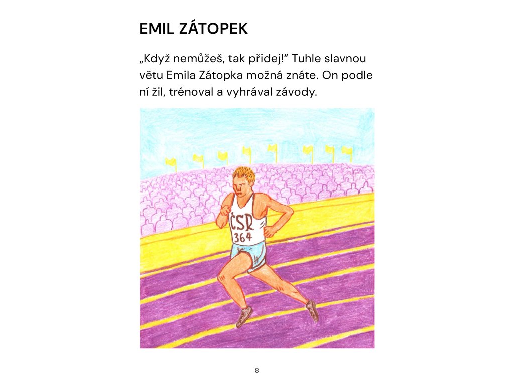 Naše země je sice malá, ale narodilo se tu mnoho velkých sportovců. Tak velkých, že je zná celý svět. Alespoň o některých z nich se můžete dočíst v této knížce. Sportu zdar!