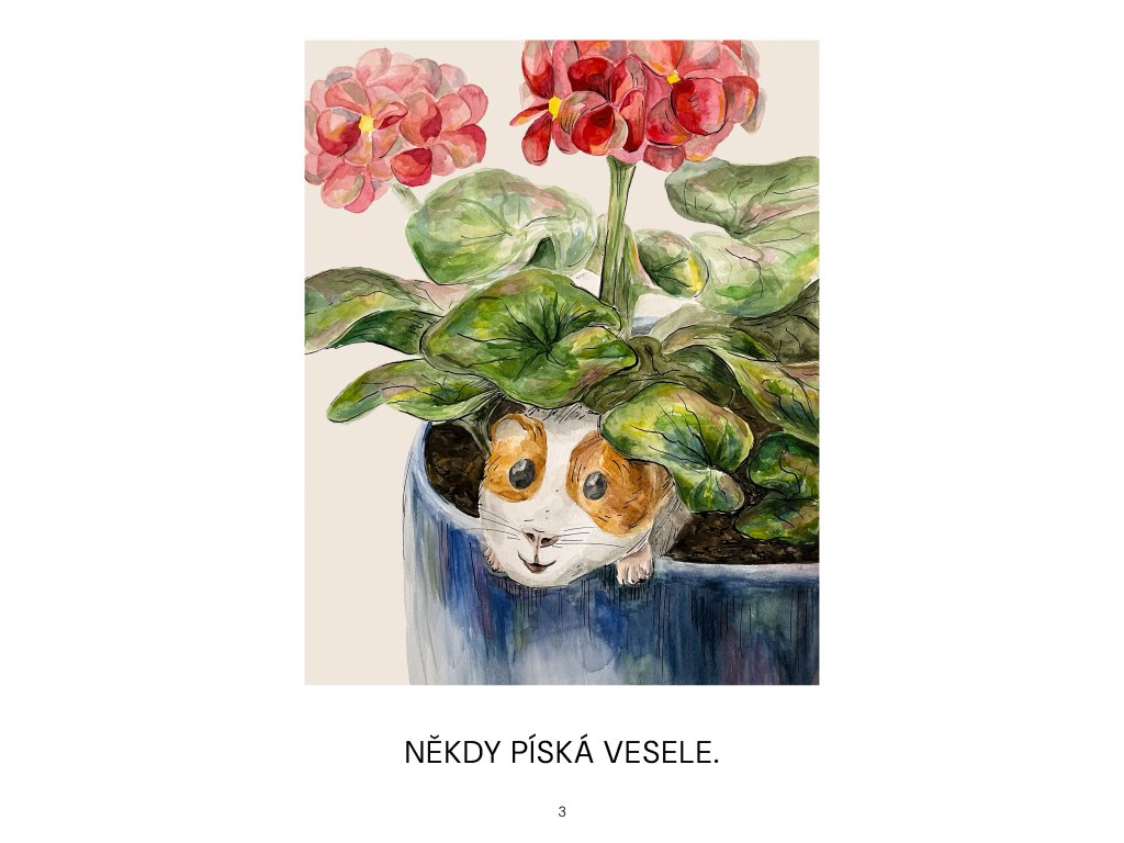 Mám doma morče. Je chlupaté a tak roztomilé! Někdy píská vesele, někdy smutně. Zkouším, co ho rozveselí. Voda, seno nebo pohlazení? Moje morče je nejlepší na světě.
