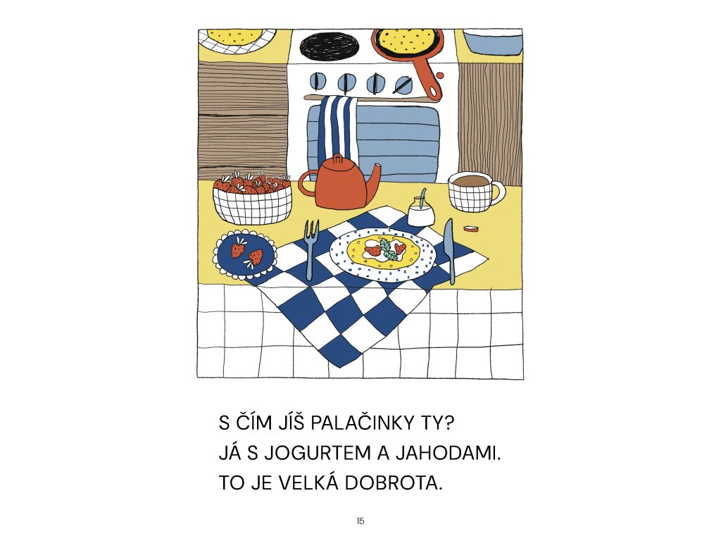 Dnes si uděláme k snídani palačinky. Krok za krokem. Co budeme potřebovat? Já mám nejraději palačinky s jahodami.