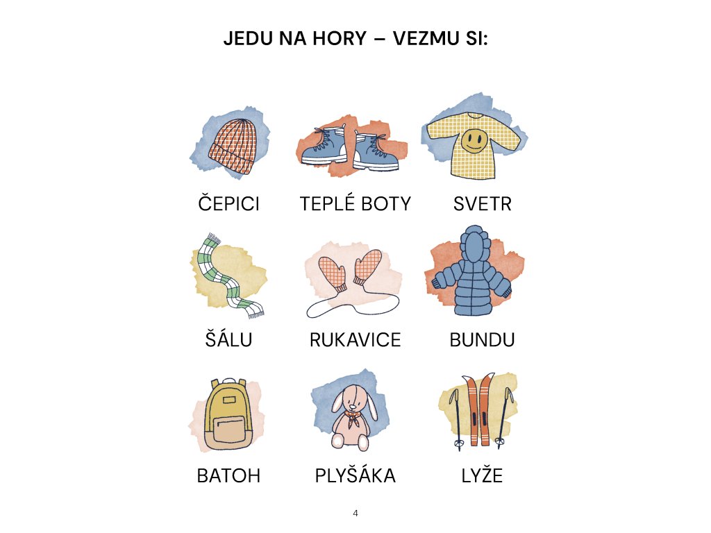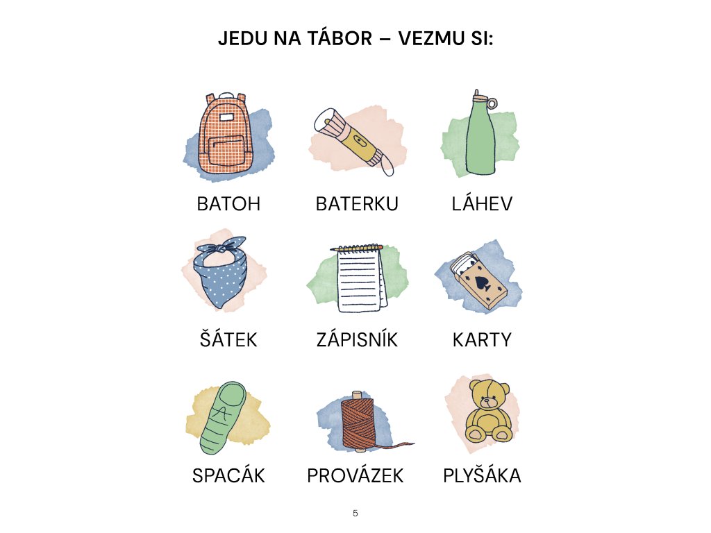 Je dobré mít seznam. Abychom na něco nezapomněli. Třeba když letíme k moři, nezapomenout si plavky je velký úkol. Podle této knížky si můžete zabalit batůžek na přespávačku ke kamarádovi nebo k dědovi na venkov. Tak hurá za dobrodružstvím!