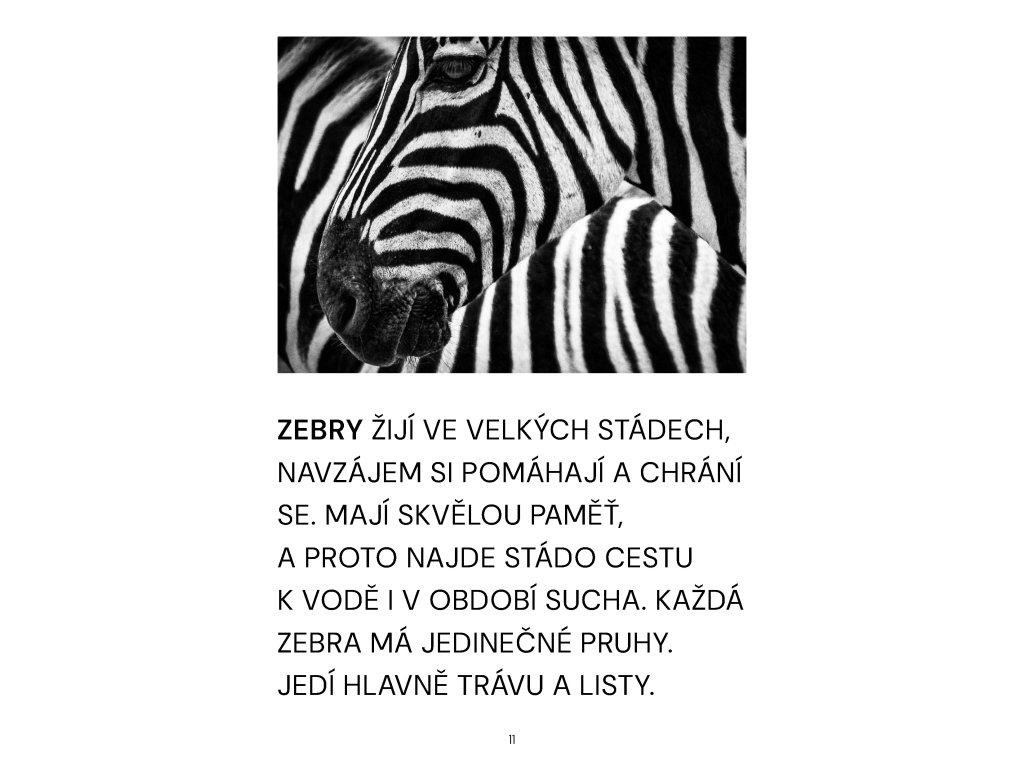 Víte, co je safari? Kam se na safari jezdí a jaká zvířata tam můžeme potkat? V dálce se prochází stádo slonů. Nosorožci se koupou v řece a žirafy okusují stromy. Nádhera všude kolem!