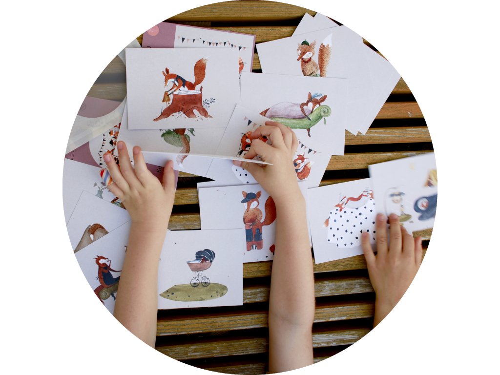 Sada obsahuje 16 listů A6 s ilustracemi a knížku s textem.